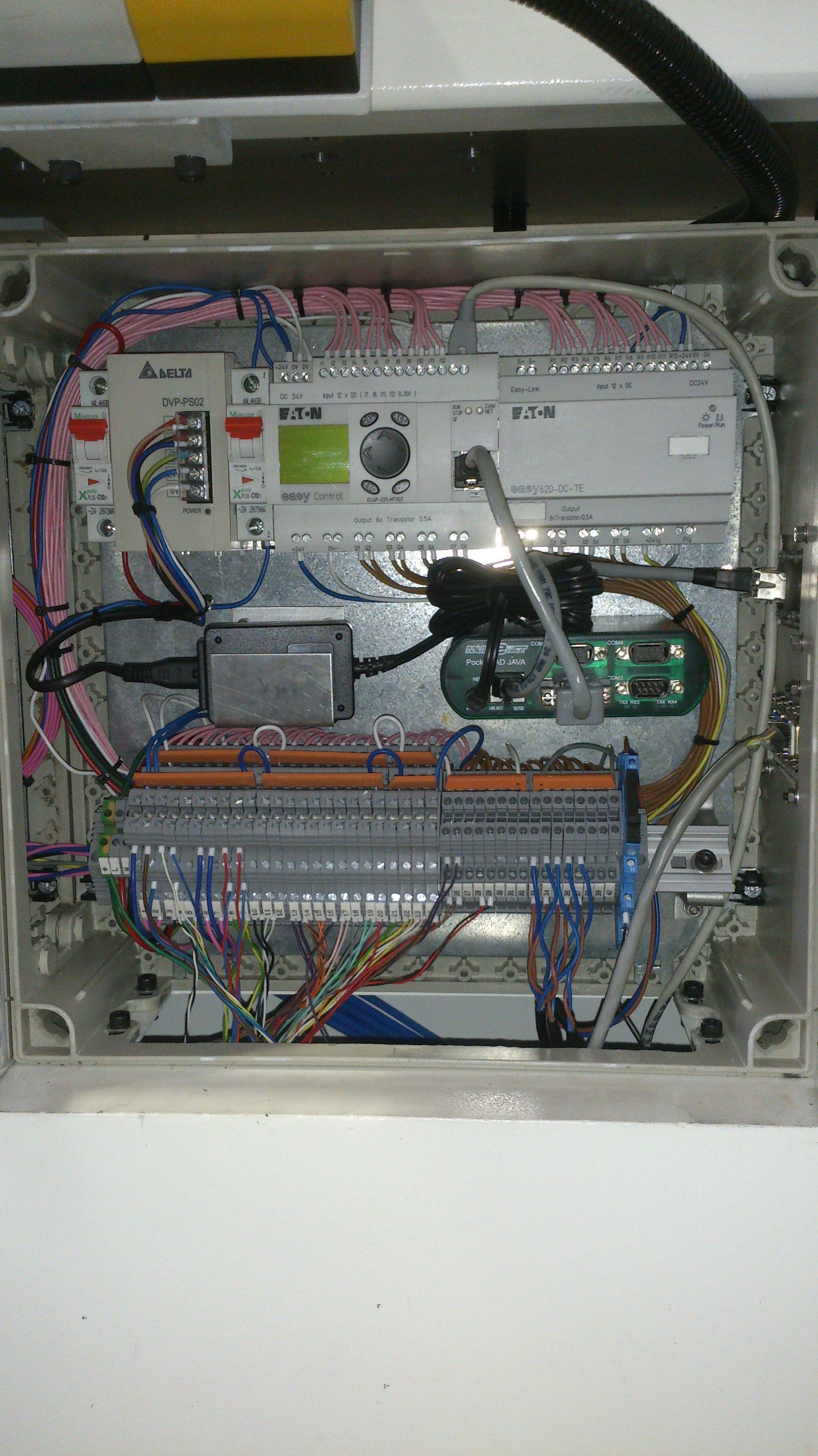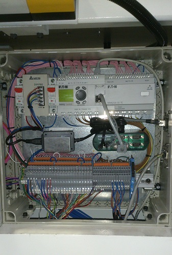 Control PanelOur standard control panel uses an EATON EC4P to control the majority of our machines. Has ethernet capabilities in order to be connected to a central server, as well as multiple serial ports that can be used for scanners, printers, etc -