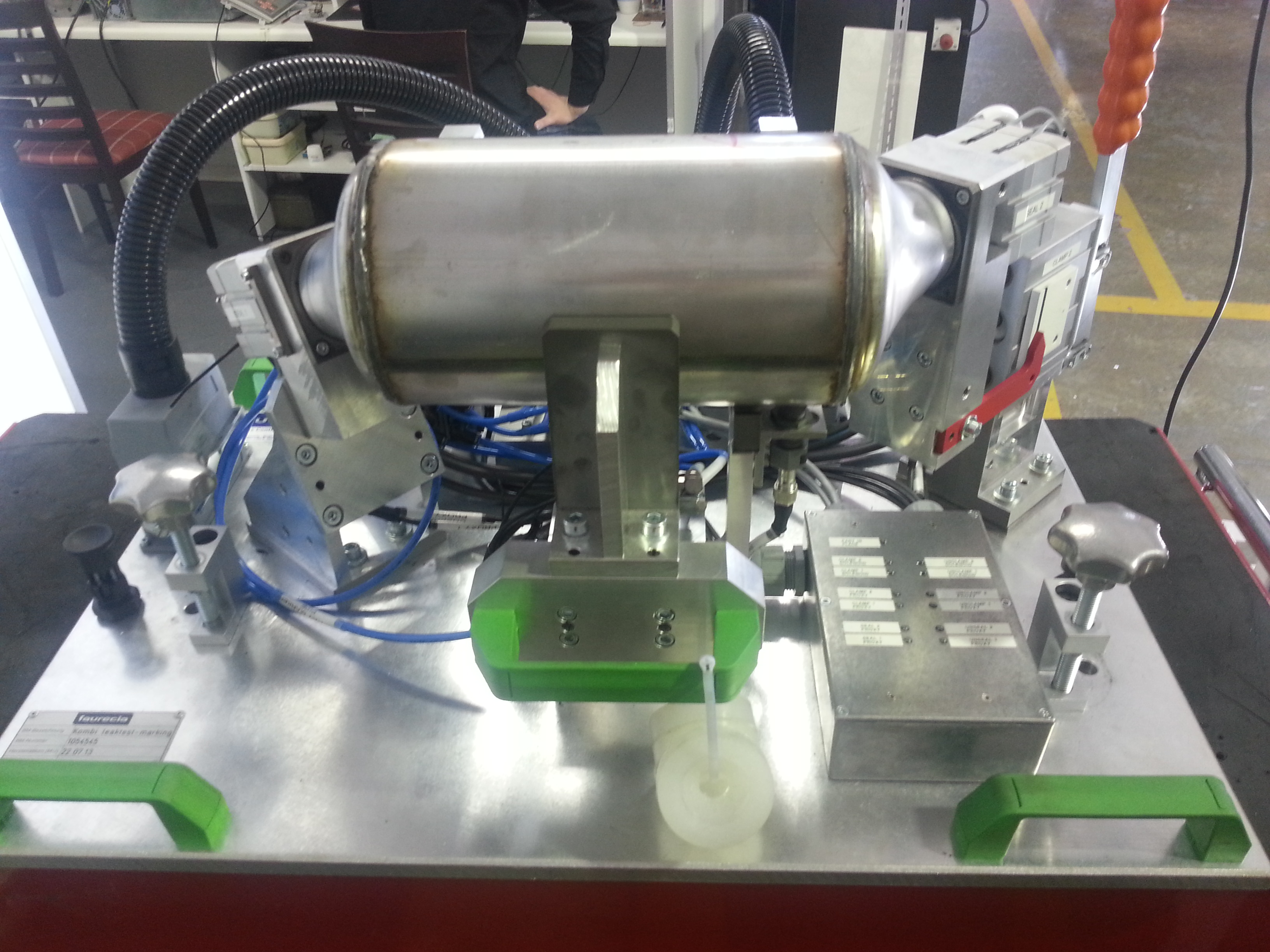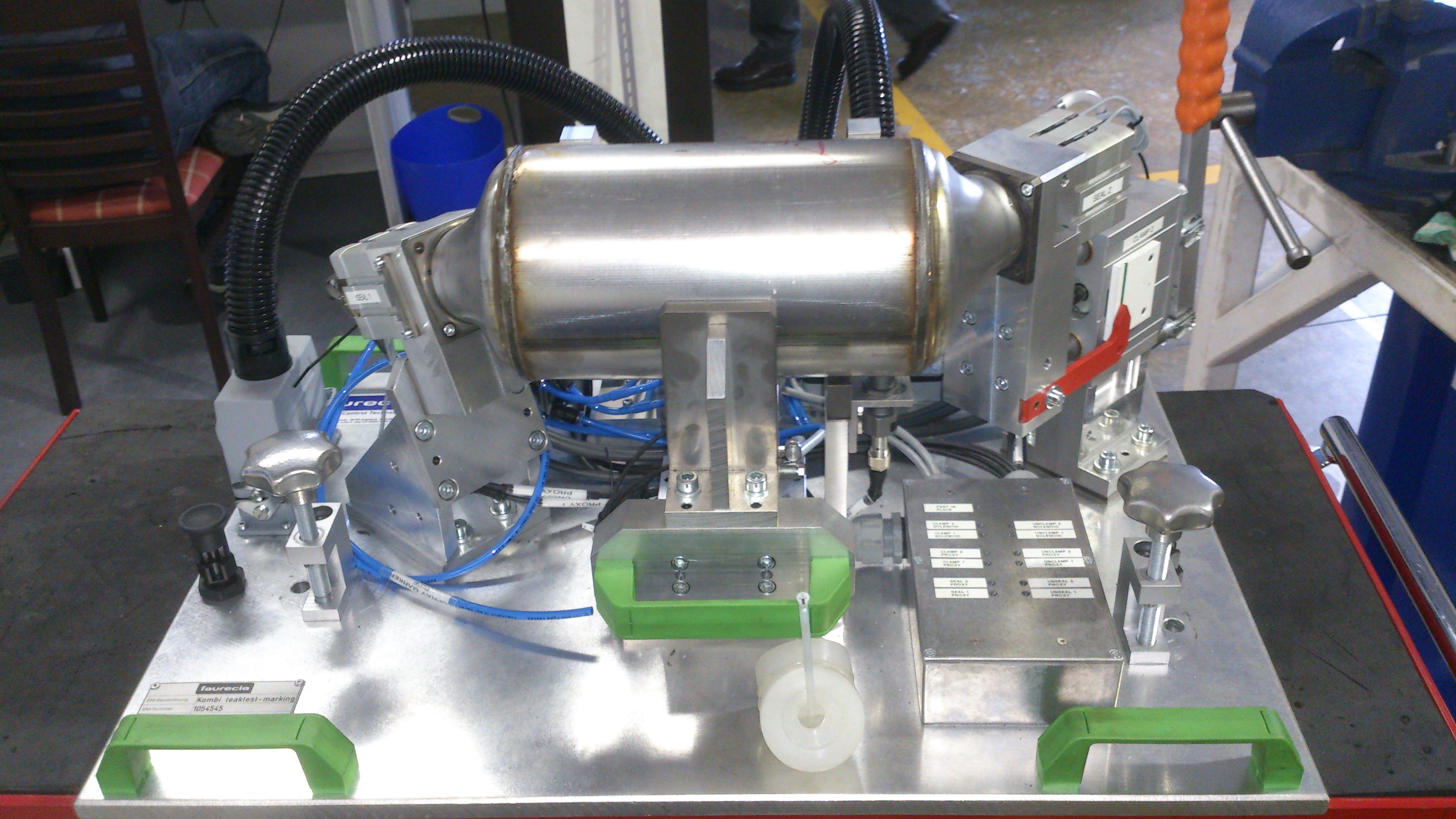 Jig 1Tooling that we automated to be compatible with one of our machines. The tooling holds a part while it is leaktested and scribed -