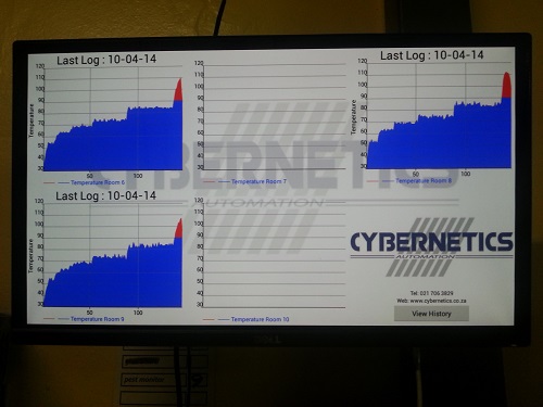 Temperature Logging SystemWe implemented a system to monitor the temperature of a room in order to ensure that the product reached a desired temperature (highlighted in red) during its sterilisation process -